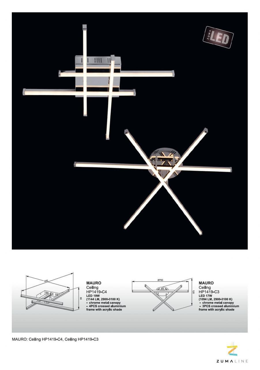 Потолочная светодиодная люстра Zumaline Mauro HP1419-C4 – популярная модель от известного производителя Zumaline. – экономичное и безопасное решение для квартиры или частного дома, офисных учреждений и зданий. Осветительный прибор потребляет мало электроэнергии, светит ярко и не мерцает. Прекрасно подойдет в практически любой интерьер. Перед покупкой внимательно изучите: описание, фото, характеристики, отзывы покупателей и сертификаты. Модель относится к категории «Потолочные люстры». Подойдет для зала и коридора, но также отлично будет смотреться и в других комнатах или служебных помещениях. Можно крепить осветительный прибор как на простом, так и на натяжном потолке. Подходит для помещений, как с высокими, так и с низкими потолками. В интернет-магазине «LUMARKT» можно купить по недорогой цене 17154 руб. с бесплатной доставкой по Москве. Торопитесь сделать заказ!