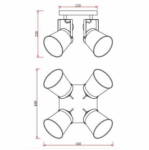 - Площадь освещения, м2