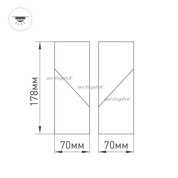 - Площадь освещения, м2