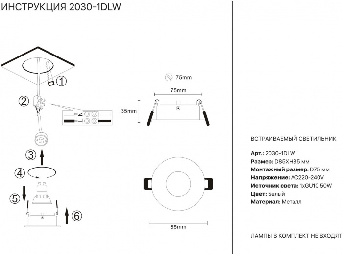 Точечный светильник 2030 2030-1DLW это отличная модель от надежного бренда Simple Story. – экономичное и безопасное решение для квартиры или частного дома, офисных учреждений и зданий. Светильник потребляет мало электроэнергии, светит ярко и не мерцает. Прекрасно подойдет в практически любой интерьер. Перед покупкой досконально изучите: описание, фото, характеристики, отзывы покупателей и сертификаты. Модель относится к категории «Точечные светильники». Подойдет для зала и коридора, но также отлично будет смотреться и в других комнатах или служебных помещениях. Можно крепить прибор освещения как на простом, так и на натяжном потолке. Подходит для комнат, как с высокими, так и с низкими потолками. В интернет-магазине «LUMARKT» продается по низкой цене 652 руб. с бесплатной доставкой по Москве.