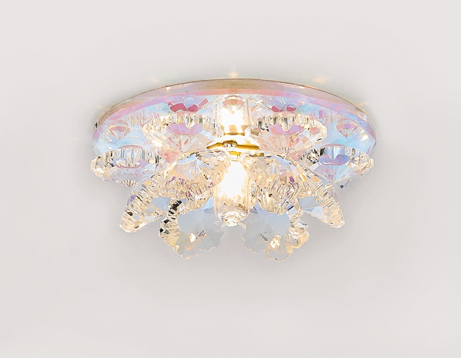 Точечный светильник Хрусталь Зеркальный K440 PR это хорош ая модель от зарекомендовавшего себя производителя Ambrella. – экономичное и безопасное решение для квартиры или частного дома, офисных учреждений и зданий. Осветительный прибор потребляет мало электроэнергии, светит ярко и не мерцает. Хорошо впишется в практически любой интерьер. Перед покупкой досконально прочитайте: описание, фото, характеристики, отзывы покупателей и сертификаты. Модель относится к категории «Точечные светильники». Подойдет для зала и детской, но также отлично будет смотреться и в других комнатах или служебных помещениях. Можно устанавливать прибор как на обычном, так и на натяжном потолке. Подходит для комнат, как с высокими, так и с низкими потолками. В интернет-магазине «LUMARKT» можно купить по низкой цене 253 руб. с бесплатной доставкой по Москве.