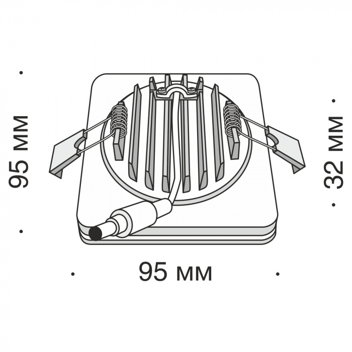 - Площадь освещения, м2